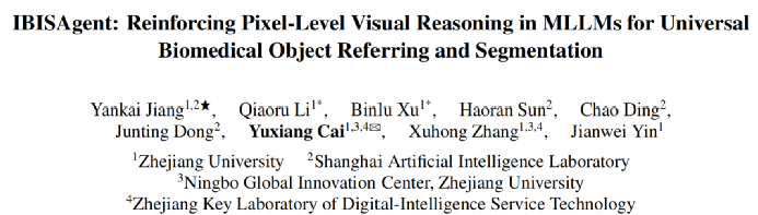 鉴于上述问题,浙江大学蔡钰祥教授、上海人工智能实验室研究员江彦开等人联合提出了 IBISAgent——一个将分割重新定义为多步视觉决策过程的 Agentic MLLM 框架。该成果已被 CVPR 2026 接收。
