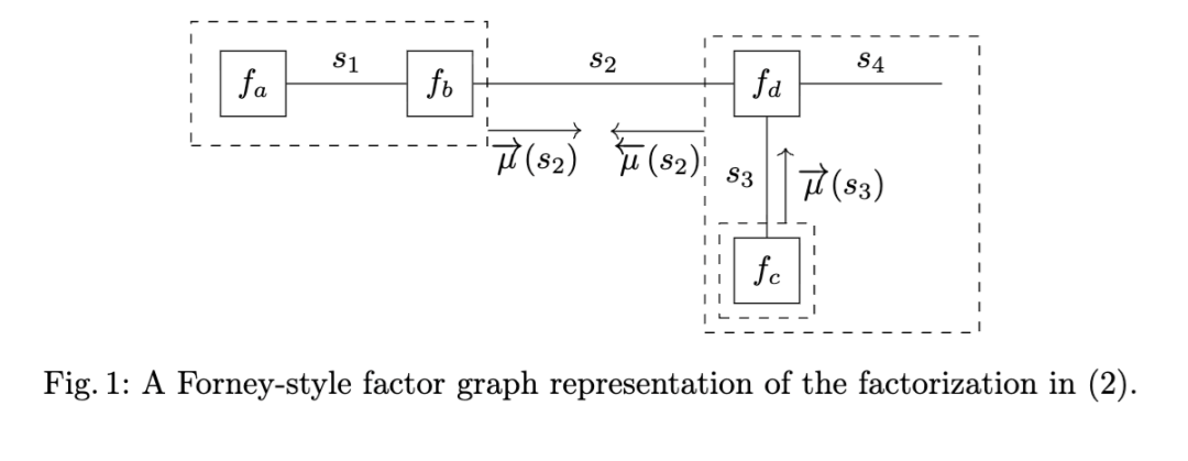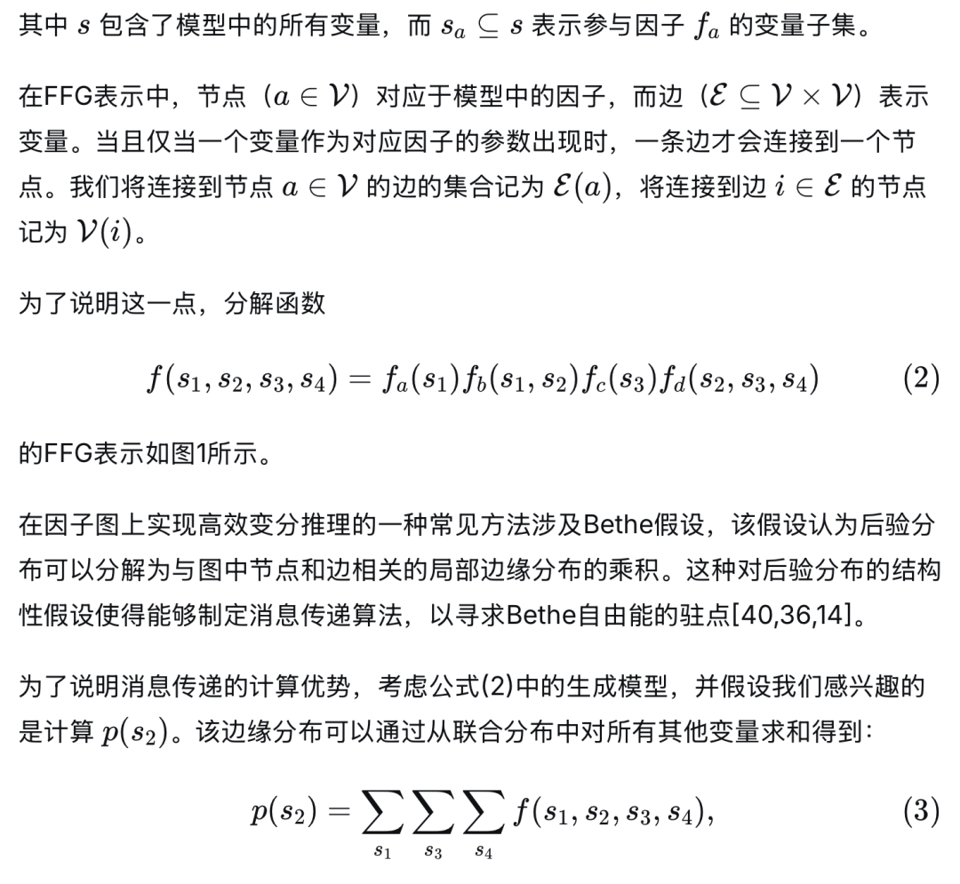 可以被解释为模型 FFG 表示中的局部消息,如图 1 所示。关于因子图及相关(变分)消息传递算法的全面论述,我们建议读者参阅 [28,29,40,14,36]。