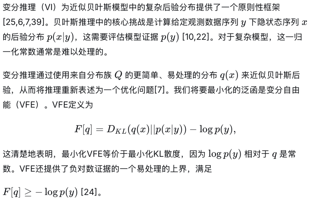 当处理随机动力学或不确定性下的状态估计需求时,随机最优控制方法可以通过变分推理进行重新表述[23,21]。在这里,关于状态和/或控制的难处理后验分布被一个易处理的变分分布所近似。