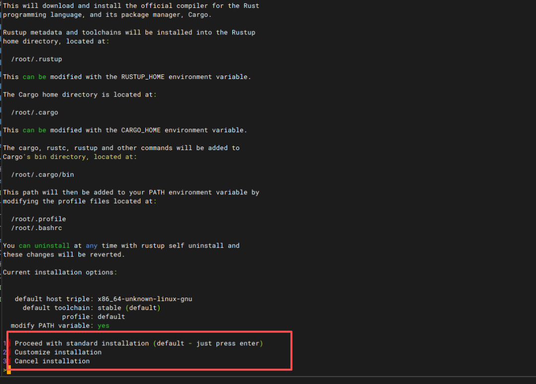 source $HOME/.cargo/env然后验证一下安装是否成功: