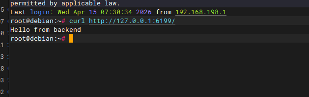 curl http://127.0.0.1:6199/如果一切正常,你应该能看到"Hello from backend"这个输出。这就说明我们的代理服务器工作正常,成功把请求转发到了后端。