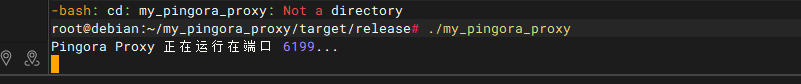 ./target/release/my_pingora_proxy如果没什么报错,应该就能看到程序跑起来了。不过这个时候你可能会发现,程序启动之后没有任何输出,也不退出。这是正常的,它在等待连接呢。