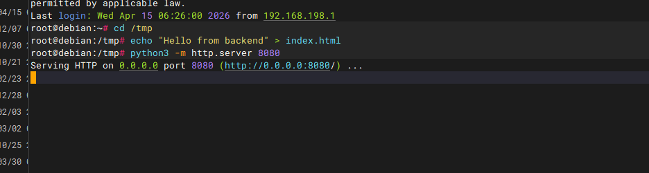 光跑起来还不行,咱们得测试一下能不能正常工作。先准备一个后端服务。我这边就用Python简单起一个HTTP服务器: