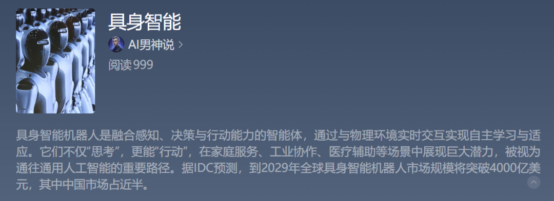 具身智能的核心特征在于智能体依托物理身体,通过感知—理解—决策—行动的闭环,与环境进行强交互并持续学习,进而展现出自主性、泛化性和适应性。全球专家普遍强调,具身智能不仅是机器学习、计算机视觉与机器人技术的综合体现,更是AI走向落地化和实用化的重要标志。