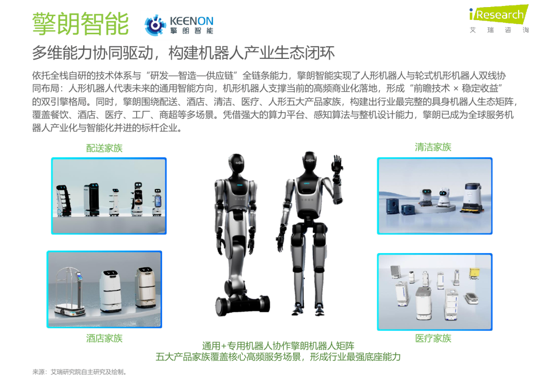 依托全栈自研的技术体系与“研发—智造—供应链”全链条能力,擎朗智能实现了人形机器人与轮式机器人双线协同布局。人形机器人代表未来的通用智能方向,轮式机器人支撑当前的高频商业化落地,形成“前瞻技术 × 稳定收益”的双引擎格局。