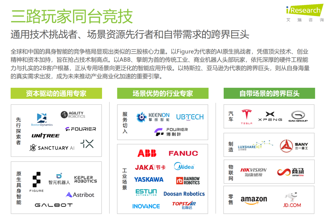 全球和中国的具身智能竞争格局显现出类似的三股核心力量。