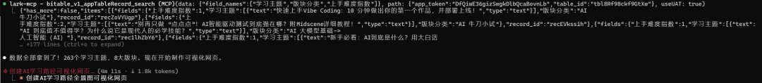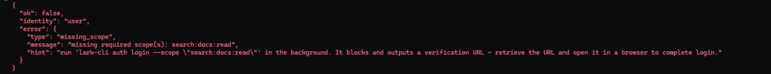而且,这次飞书还有个小细节设计的非常好,平常AI在调用一些命令工具时,难免会遇到一些API的报错信息,但一般报错信息,只返回一个什么404、502啥的。