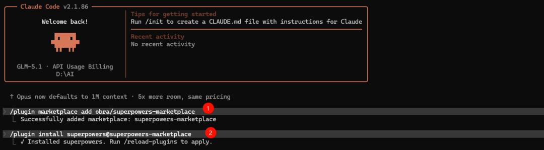在 Claude Code 终端中执行两条命令: