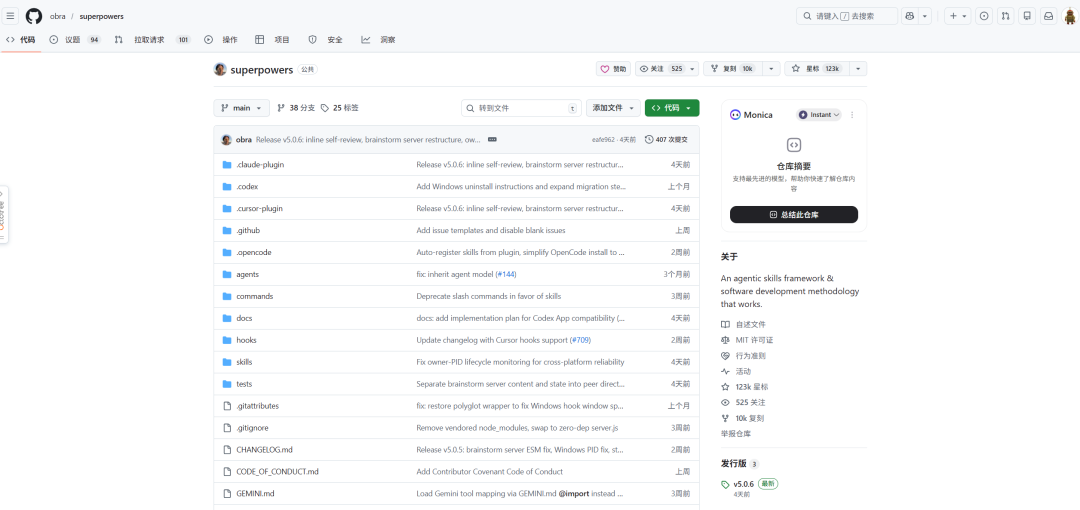 今天给大家介绍一款开源封神插件——Superpowers,它是由 Jesse Vincent(obra)打造的开源 AI 编程工作流框架,核心理念是:Process over Prompt(流程大于提示词),给 AI 套上软件工程的 “纪律与护栏”,让它像资深工程师一样先思考、再规划、后编码、必验证。