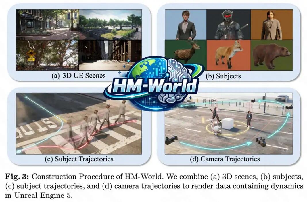 引入了混合记忆(Hybrid Memory)范式,要求模型同时精确记忆静态背景并警惕追踪动态主体,确保在主体进出视野时其运动的连续性。为此,构建了 HM-World 数据集并提出了 HyDRA 记忆架构。
