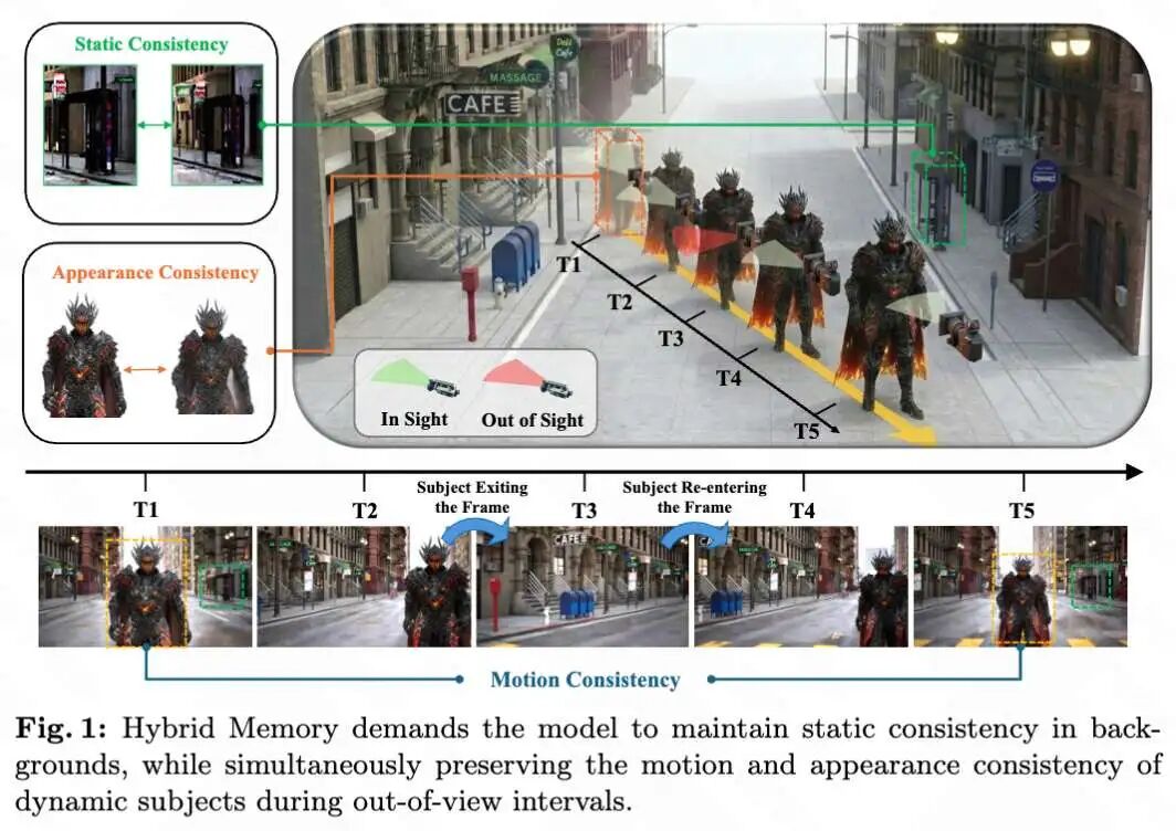 华中科技大学和快手可灵的这篇文章《Out of Sight but Not Out of Mind: Hybrid Memory for Dynamic Video World Models》提出了一种新颖的混合记忆范式,以解决当前视频世界模型在处理动态主体进出视野时的挑战。