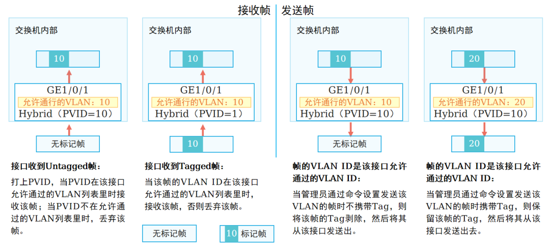 port hybrid untagged vlan 10 # VLAN 10:剥离Tag(管理可识别)