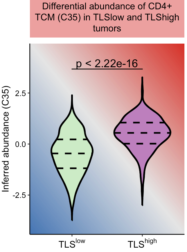 labs(title = "Differential abundance of CD4+ TCM (C35) \n in TLSlow and TLShigh tumors ",