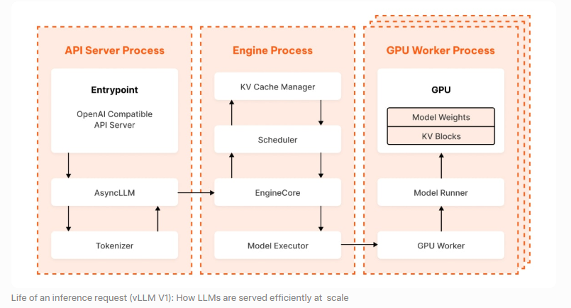 第三,它把“模型前向计算”变成了“系统化执行流程”的一部分。也就是说,vLLM 不只是一个 forward runner,它更像是一个懂调度、懂缓存、懂并发的推理 runtime。
