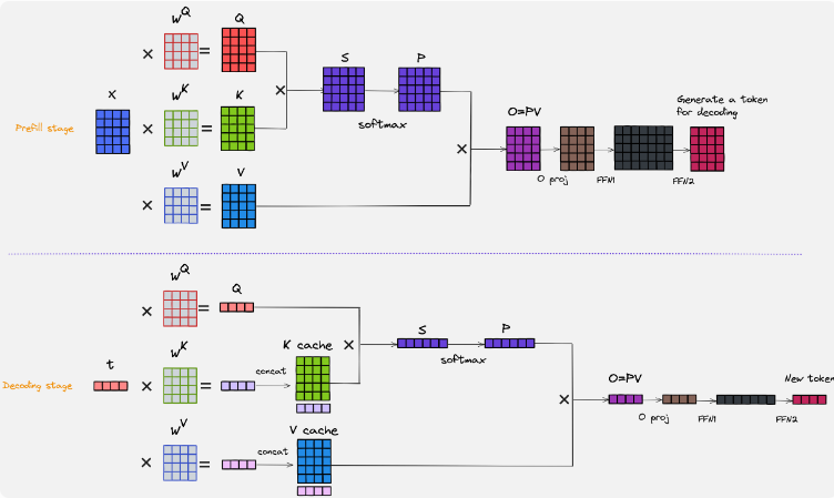 所以,大模型推理的本质并不神秘,它就是一个典型的自回归生成过程。难点也恰恰来自这里:因为这个过程不是一次性完成,而是一个持续迭代、持续读写上下文、持续调度资源的过程。