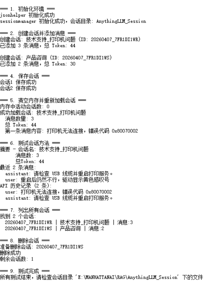 ? "所有测试结束,请检查会话目录 '" + ADDBS(SYS(5) + SYS(2003)) + "AnythingLLM_Session' 下的文件"