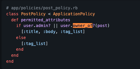 我在下面的专家文档中看到,我想知道这是否是基于给定模型中的user_id的红宝石或专家魔法的一部分。或者,如果这只是他们用来在https://github.com/varvet/pundit上找点东西的话