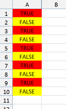 // Create a workbook with A1:A10 filled with alternating TRUE / FALSE values.