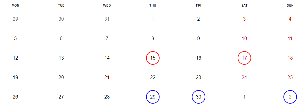 目前,我在我的项目中使用了一个自定义的样式日历。我想要自定义每个日期项目的圆形边框,如下图。