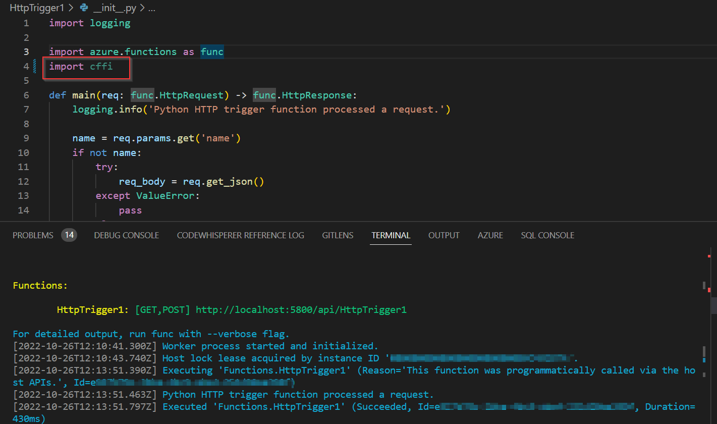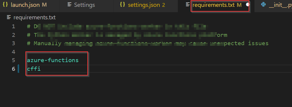 cffi我的需求文件有cffi包,并使用devops管道在运行时安装这些包,为azure函数生成.zip。但还是失败了。