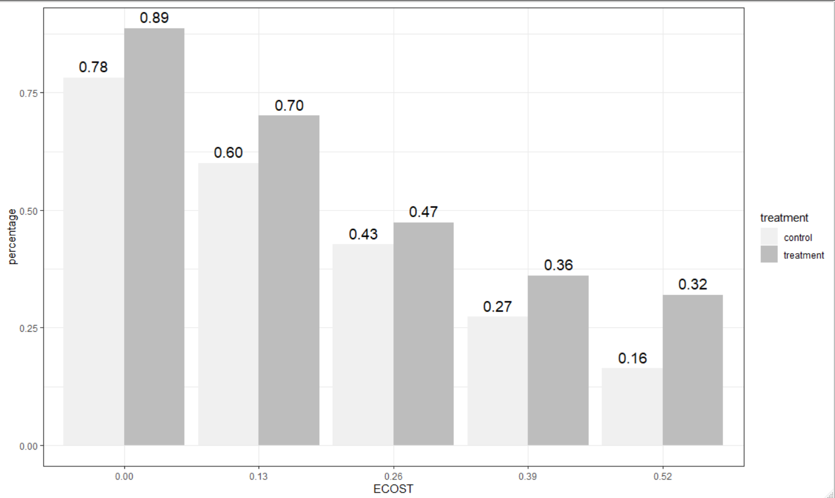 ggplot(aes(x = ECOST, y = percentage, fill = treatment, label=sprintf("%0.2f", round(percentage, digits = 2)))) +