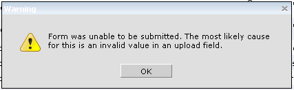 表格无法提交。造成这种情况的最可能原因是上载字段中的无效值。