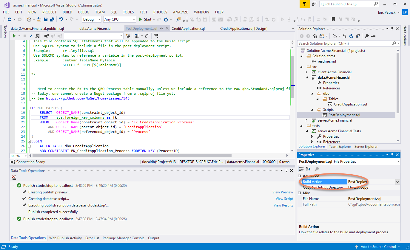 ...在运行构建时,我可以看到ADMIR_Create.sql脚本确实包含所有Post语句。也就是说,我可以在这个文件中看到上面的代码行。