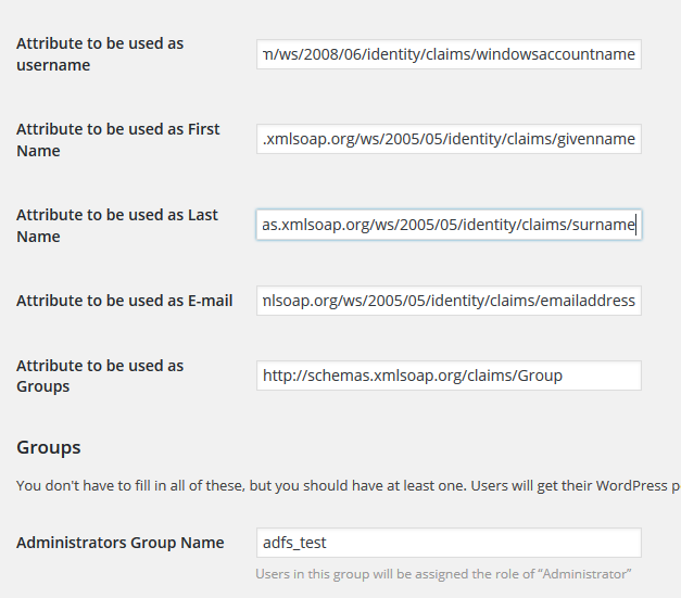 在ADFS方面,我已经将索赔提供程序信任配置为SSP,将依赖方信任配置为WP。