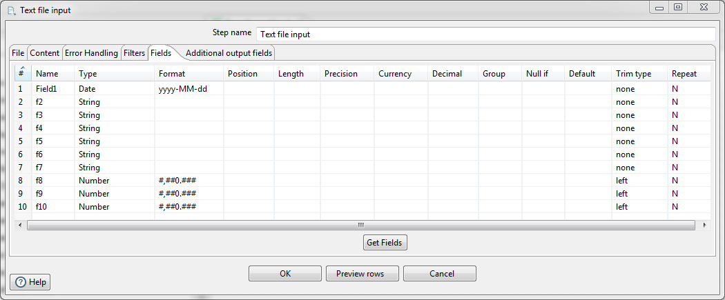 我在CSV文件输入步骤中使用: