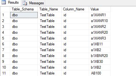 Select Expr = 'Select Table_Schema='''+Table_Schema+''',Table_Name='''+Table_Name+''',Column_Name='''+Column_Name+''',Value=cast('+Column_Name+' as varchar(max)) From '+quotename(Table_Schema)+'.'+quoteName(Table_Name)+' '