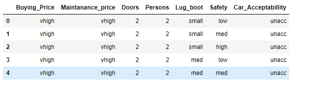 df["Buying_Price"]=df["Buying_Price"].replace({"vhigh":4})查找所有"vhigh"值,并将其与当前包含的值进行比较,将其替换为4。在比较时,它失败了,因为尝试将str数据与int64 ('ndarray(dtype=int64)')进行比较。