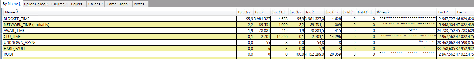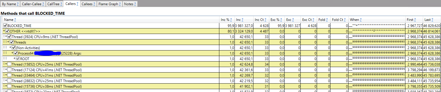 我运行了一个我们的服务器,因为我们怀疑线程池饥饿的问题。然而,我在分析结果时遇到了一些困难。