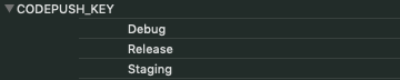 buildConfigField "String", "CODEPUSH_KEY", '"<staging_key>"'