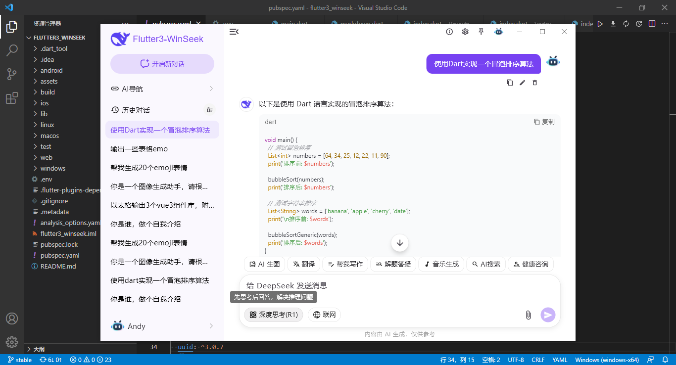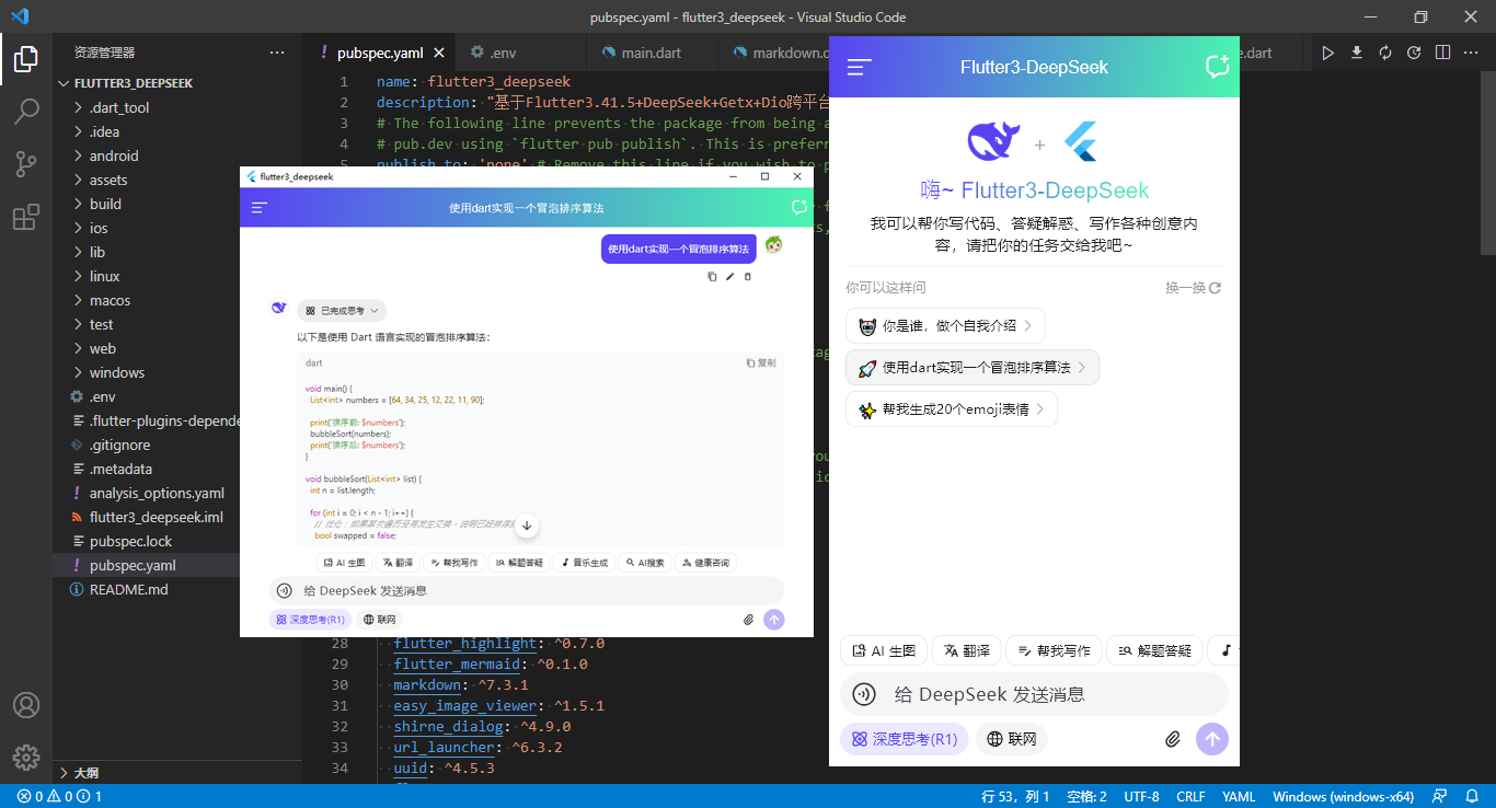 2026年最新研发跨平台AI实战 - Flutter3.41.5+Dart3.11+Dio+FlutterMarkdown聚合DeepSeek-chat聊天大模...